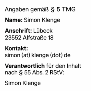 Verpflichtungen zur Entfernung oder Sperrung der Nutzung von Informationen nach den allgemeinen Gesetzen bleiben hiervon unberührt. Eine diesbezügliche Haftung ist jedoch erst ab dem Zeitpunkt der Kenntnis einer konkreten Rechtsverletzung möglich. Bei Bekanntwerden entsprechender Rechtsverletzungen werde ich diese Inhalte umgehend entfernen.